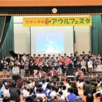 11月10日(土)、天拝小学校アウルフェスタが開催されました。 午前中、児童達による演奏発表会、地域から天拝坂公民館の合唱、福岡農業高校の和太鼓、武蔵台高校の吹奏楽部演奏、午後からバザー、地域によるゲームがあり、ニコ …